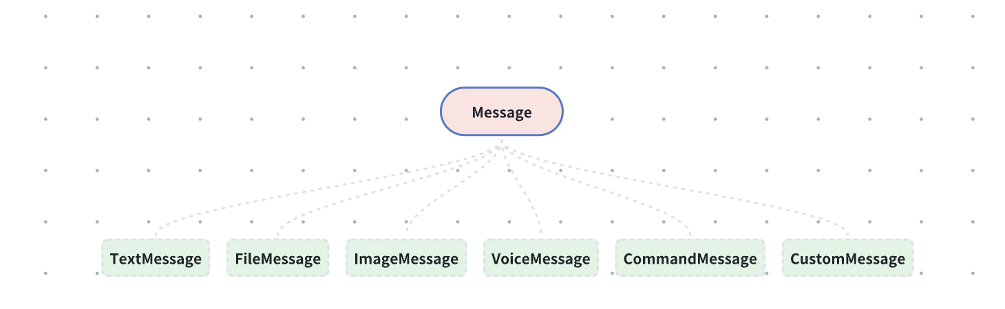消息对象 Message 是 SDK 封装通用消息对象,Message 更像是一个父类, Message.content 是具体的子类,例如:文本消息、图片消息 等